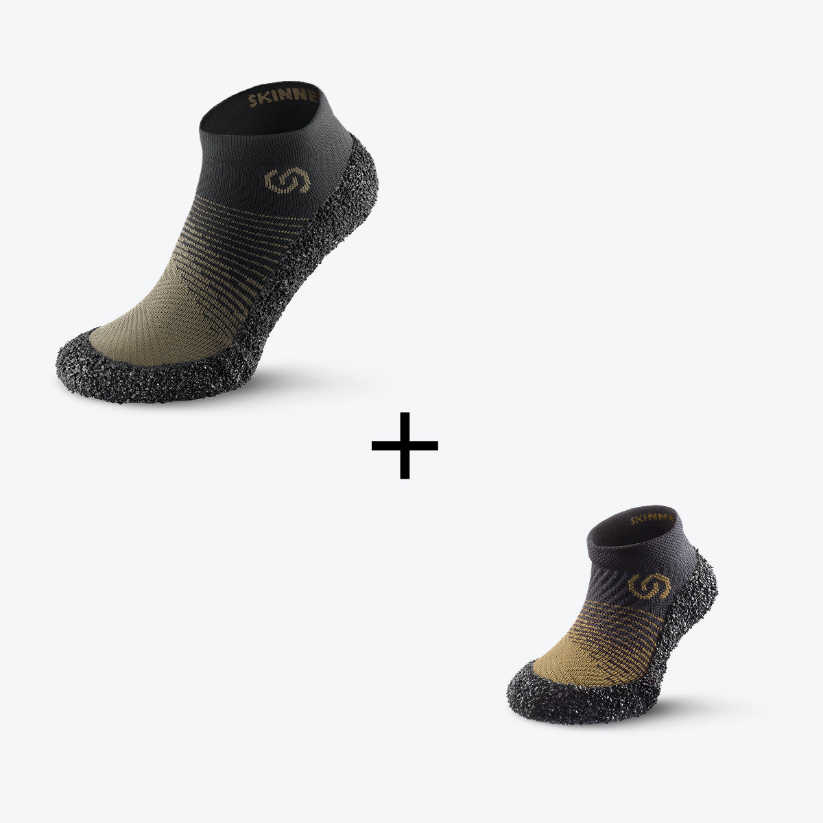 A pack for a parent and child who want to share comfort and the style of natural movement. Includes one pair of Skinners Comfort 2.0 for adults and one pair of Kids 2.0 for little adventurers. Both models are lightweight and compact, ideal for barefoot walking, travel, sports, and everyday wear.