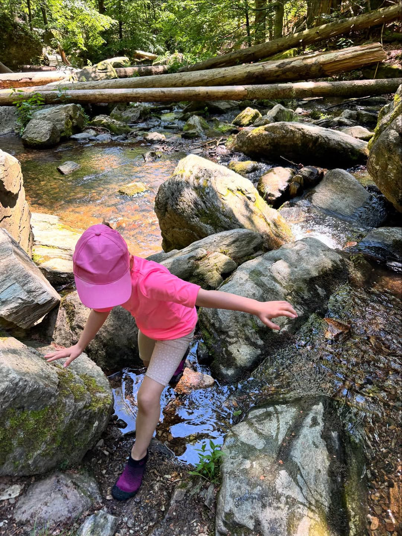 Vždy, když vyrazíme na Kladskou, chodíme kompletně bosky, protože k tomu stezka doslova svádí, ale ještě nebylo úpllně teplo, takže Skinners přišly vhod. Jen bohužel Tom má tak specificky širokou nohu, že je nosit nemůže, což ho štve 🫣🫣🫣.